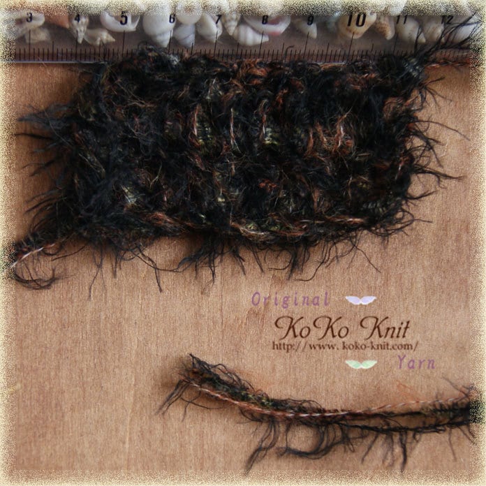 黒のファーと段染めリボン糸が良い感じで溶け合っています。