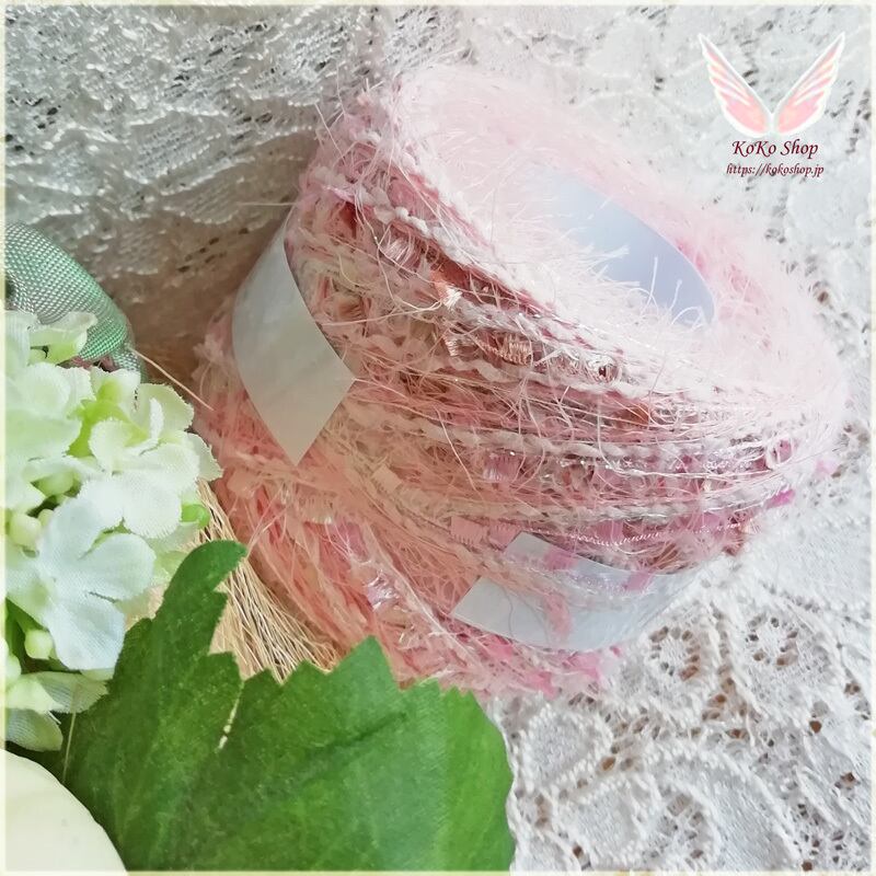 キラキラ可愛いピンクに段染めフラッグを入れて、クルクル表情を変える糸を作りました。