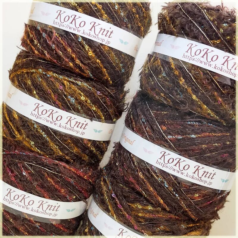§koko§ モフモフの森 〜木の実の母〜No.4~6 3玉セット181g 約165m 段染め カラフル ファー、モフモフ、ブラウン 引き揃え糸
