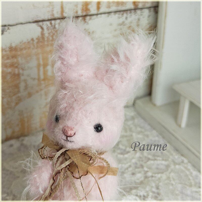 ピンクのウサギさん あみぐるみ 手足可動式 ふわふわあみぐるみ Paume(とても気持ちの良い手触り、プレゼントにも喜ばれます)
